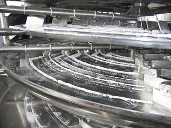 • 鉬酸銨專用盤式干燥機|鉬酸銨專用盤式干燥機銷售|陽旭干燥供 鉬酸銨專用盤式干燥機由固液分離崗位來的濕物料,由輸送器輸送到位于盤式連續(xù)干燥器頂部的定量加料器中,再被定量加入干燥器內(nèi)進行干燥作業(yè)。干燥盤內(nèi)通入飽和水蒸汽進行干燥作業(yè),物料在流動過程中完成傳熱傳質(zhì)過程,達到干燥的目的。已干物料在干燥器底部的排料口排出,從物料中逸出的濕汽(主要成分為甲醇)通過設(shè)在盤式連續(xù)干燥器頂部的排濕口進入溶劑回收系統(tǒng)。 詳情請搜索常州市陽旭干燥設(shè)備有限公司官方網(wǎng)站:www.yangxudry.com,我公司專業(yè)生產(chǎn)盤式干燥機、空心槳葉干燥機、離心噴霧干燥機、旋轉(zhuǎn)閃蒸干燥機、帶式干燥機、網(wǎng)帶式干燥機、振動流化床干燥機、真空干燥機、雙錐真空干燥機等烘干設(shè)備及混合制粒設(shè)備,歡迎來電咨詢:13861053521