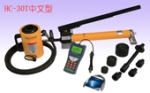 • HC系列錨桿拉拔儀是用于檢測各種錨桿、鋼筋、膨脹螺栓、錨固件抗拔力的儀器設備,也可做玻璃幕墻的現場抗拔力檢測(試驗),是各質檢單位必備的檢測儀器。本產品免費保修一年,本公司對所售出的產品實行終身維護負責制。 HC系列錨桿拉拔儀分為10噸、20噸、30噸、50噸和100噸;儀器由手動泵、中空液壓缸、中文智能數據處理器、帶快速接頭的高壓油管、錨具、轉換頭拉桿和手提便攜箱組成。10~30噸液壓缸為中空自復位式,50~100噸液壓缸為手動復位式。其中HC-(10T~100T)儀器中的數值顯示部分為2008年剛剛升級的中文型多功能顯示儀表,可直接讀取錨桿拉力值(kN),并有全中文菜單、自動計算、峰值保持、存儲和查詢功能,特別適合試驗室和現場使用,操作簡單,易學易用。 產品具體特點及配置(表一) 功能/型號 HC-(10~100) HC-(10T~100T) 鍍鎳活塞和滑套 ● ● 表面耐腐蝕靜電噴涂 ● ● 新型密封圈、工作可靠 ● ● 自動彈簧復位,結構簡單 ●(50噸以上除外) ●(50噸以上除外) 四行漢字顯示儀 ○ ● 自動關機功能 ● ● 年月日時間顯示 ○ ● 全中文操作菜單 ○ ● 顯示儀數據存儲 50條 500條 峰值保持 ● ● 儀表數據查詢和刪除 ● ● 高容量充電電池 ● ● 全程折線修正 10段 15段 防塵儀器皮包 ○ ● USB數據傳輸功能 ○ ● 上位機數據編輯軟件 ○ ● 自動生成檢驗報告 ○ ● 誤差 小于2% 小于2% 顯示儀分辨率 0.01 kN 0.01 kN 備注:“●”代表設備含有此項功能 “○”代表設備沒有此項功能 產品主要技術參數(表二) 規格 油缸中心孔 油缸行程 測量范圍 重量 特點 HC10噸 27mm 60 mm 0~100 kN 7.5㎏ 精鋼鑄體 快速復位 過載保護 數顯直讀 數據存儲 HC20噸 34mm 80mm 0~200 kN 14㎏ HC30噸 45mm 80mm 0~300 kN 16㎏ HC50噸 60mm 120mm 0~500 kN 29㎏ HC100噸 90mm 150mm 0~1000KN 65㎏