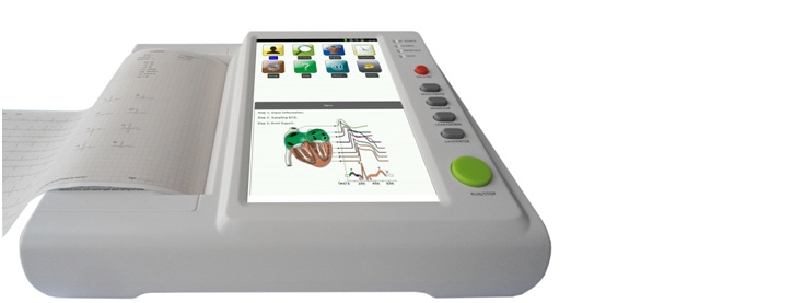 • 10.2寸大屏十二道心電圖機(jī) 十二導(dǎo)聯(lián)同步心電采集; 配備高速高靈敏度熱點(diǎn)記錄系統(tǒng),可描跡深淺調(diào)節(jié),兼容210,215和216mm寬的心電記錄紙; 10.2寸高清彩色液晶顯示屏,觸控操作,12導(dǎo)聯(lián)同屏顯示; 心電圖自動(dòng)診斷功能,具有心率超限報(bào)警功能,并自由設(shè)置是否打印測(cè)量分析報(bào)告; 全鍵盤(pán)中文輸入(拼音輸入法和五筆輸入法可選) 具有實(shí)時(shí)心電波形凍結(jié)功能,便于抓取病人重要心電波形; 手動(dòng)、自動(dòng)、節(jié)律、體檢等多種操作模式; 具有RS232通訊接口、USB接口和LAN網(wǎng)絡(luò)接口; 400例機(jī)身存儲(chǔ),可外插U盤(pán)存儲(chǔ),可外置大容量SD卡,可在電腦上實(shí)現(xiàn)歷史數(shù)據(jù)存儲(chǔ),回放和打印; 內(nèi)置大容量鋰離子可充電電池,可連續(xù)工作24小時(shí),打印1000份心電報(bào)告。