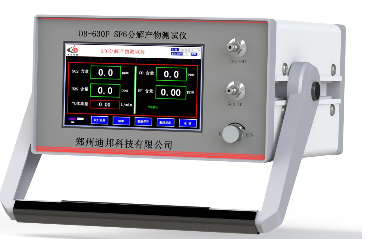 • 產品簡介 DB-630F SF6分解產物測試儀,引進高品質電化學傳感器,采用嵌入式微機技術,是一款高精度智能化的檢測儀器。通過檢測SF6電氣設備內部SO2、H2S、CO等分解產物的含量,能夠快速準確地判斷出SF6斷路器、互感器、GIS等電氣設備內部的早期故障。 功能特點 ◆獨特的超大真彩觸摸液晶屏顯示,操作方便 ◆數據存儲量大于10000條,方便歷史數據查詢 ◆具備多點校準及數據補償功能,方便用戶校準 ◆交叉互擾的自動去除技術,測量結果更準確 ◆具備自動清潔管道及校零功能 ◆內置電子質量流量計,數字流量指示 ◆配有專用拉桿防震箱,適合山路運輸以及野外作業 技術參數 ◆測量范圍:H2S:0~100ppm(標配) 分辨率:0.1ppm    SO2:0~100ppm(標配) 分辨率:0.1ppm    CO :0~500ppm(標配) 分辨率:0.1ppm    HF :0~10ppm (選配) 分辨率:0.1ppm ◆測量精度: H2S/SO2/HF:測量值≤10ppm時,誤差≤±0.5ppm 測量值>10ppm時,誤差≤±5% CO:測量值≤50ppm時,誤差≤±5ppm 測量值>50ppm時,誤差≤±5% ◆響應時間:T90<40S ◆氣體流量:0.2~0.4L/min ◆輸出接口:USB及RS232 ◆工作電源:交直流兩用,工作時間大于10小時,過充保護 ◆產品尺寸:360×260×130(mm)