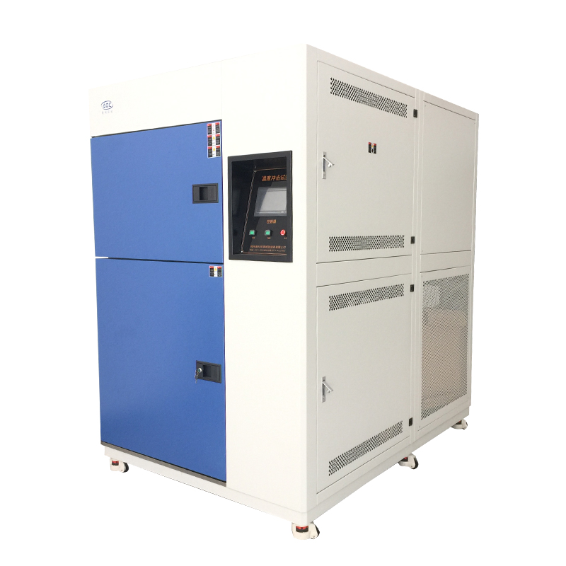 • 產品名稱 三箱式溫度沖擊試驗箱 一、產品用途 溫度沖擊試驗箱又叫冷熱沖擊試驗箱,它廣泛用于電工、電子產品整機及零部件進行耐寒試驗、溫度快速變化或漸變條件下的適應性試驗,特別適用于進行電工、電子產品的環境應力篩選(ESS)試驗。 二、產品規格(mm) 1.型號WDCJ-50 工作室尺寸D×W×H 320×350×450 外形尺寸D×W×H 1500×1600×2020 2.型號WDCJ-100 工作室尺寸D×W×H400×500×500 外形尺寸D×W×H 1500×1700×2020 3.型號WDCJ-150 工作室尺寸D×W×H500×500×600 外形尺寸D×W×H 1600×1700×2100 4.型號WDCJ-225 工作室尺寸D×W×H750×600×500 外形尺寸D×W×H 2000×1800×2100 5.型號WDCJ-250 工作室尺寸D×W×H700×650×550 外形尺寸D×W×H 2000×2000×2100 6.型號WDCJ-500 工作室尺寸D×W×H800×800×800 外形尺寸D×W×H 2500×2500×2100 7.型號WDCJ-010 工作室尺寸D×W×H1000×1000×1000外形尺寸D×W×H 3500×3500×2200 8.型號WDCJ-015 工作室尺寸D×W×H1500×1000×1000外形尺寸D×W×H 4200×3800×3800 三、技術參數 1.溫度沖擊范圍:0℃~150℃(A),-20℃~150℃(B)、-40℃~150℃(C)、-60℃~150℃(D); 2.溫度范圍:-20℃~200℃(A)、-40℃~200℃(B)、-60℃~200℃(C)、 -70℃~200℃(D) 3.試驗區:①溫度波動度±0.5℃(溫度恒定后),②溫度偏差≤3℃; 4.高低溫區:溫度波動度≤±2.0℃; 5.升溫速率:1.0~3.0℃/min; 6.降溫速率:0.7~1.0℃/min; 7.溫度轉換時間:≤5s(樣品從高溫區到低溫區或從低溫區到高溫區); 8.溫度恢復時間:≤5min 9.溫度轉換方式:氣動風門切換,換氣式,做靜態運行。 10.電源電壓:AC380±10%V 50Hz 四、箱體結構 1.試驗箱結構形式:采用整體組合結構式,采用此方式箱體占地面積小、結構緊湊、外形美觀,制冷機組置于獨立的機組箱體內,以減少制冷機組運行時的震動、噪聲對試驗箱的影響,同時便于機組的安裝和維修,電器控制面板置于試驗箱的右側板上以便于運行操作 2.箱體外壁材料:冷軋鋼板,表面靜電噴塑處理; 3.箱體內壁材料:不銹鋼板(SUS304); 4.保溫材料:耐高溫防火硬質聚胺酯發泡或耐高溫防火*細纖維玻璃保溫棉; 5.試驗箱門:配有雙硅膠密封及密封條加熱裝置,設有自限溫加熱帶,防止試驗時凝露和結霜; 6.樣品架:網狀式不銹鋼樣品架; 7.電纜測試孔: 在樣品架的上部與高溫試驗箱體頂部設置有滑動式電纜穿線管; 五、制冷系統 1. 制冷系統及壓縮機:為保證試驗箱對降溫速率和*低溫度的要求, 本試驗箱的制冷系統采用法國原裝法國“泰康”全封閉壓縮機組,該制冷系統具有匹配合理、可靠性高、使用維護方便等優點; 2. 制冷系統的設計應用能量調節技術,一種行之有效的處理方式既能保證在制冷機組正常運行的情況下又能對制冷系統的能耗及制冷量進行有效的調節,使制冷系統的運行費用下降到較為經濟的狀態; 3. *質無氧銅管,充氮焊接; 7.制冷劑:采用環保型制冷劑R404A、R23; 8.制冷輔助件:主要制冷配件及控制器件均采用國*知*品**,如美國SPORLAN膨脹閥,意大利CASTEI電磁閥,截止閥,過濾器;美國RANCO壓力控制器等。 六、加熱系統 1. 加熱器采用瓷架鎳鉻絲電加熱器,此加熱器熱惰性小,壽命長。由儀表輸出可控脈沖占空比PID信號,通過固態繼電器來控制,控制平穩、可靠。