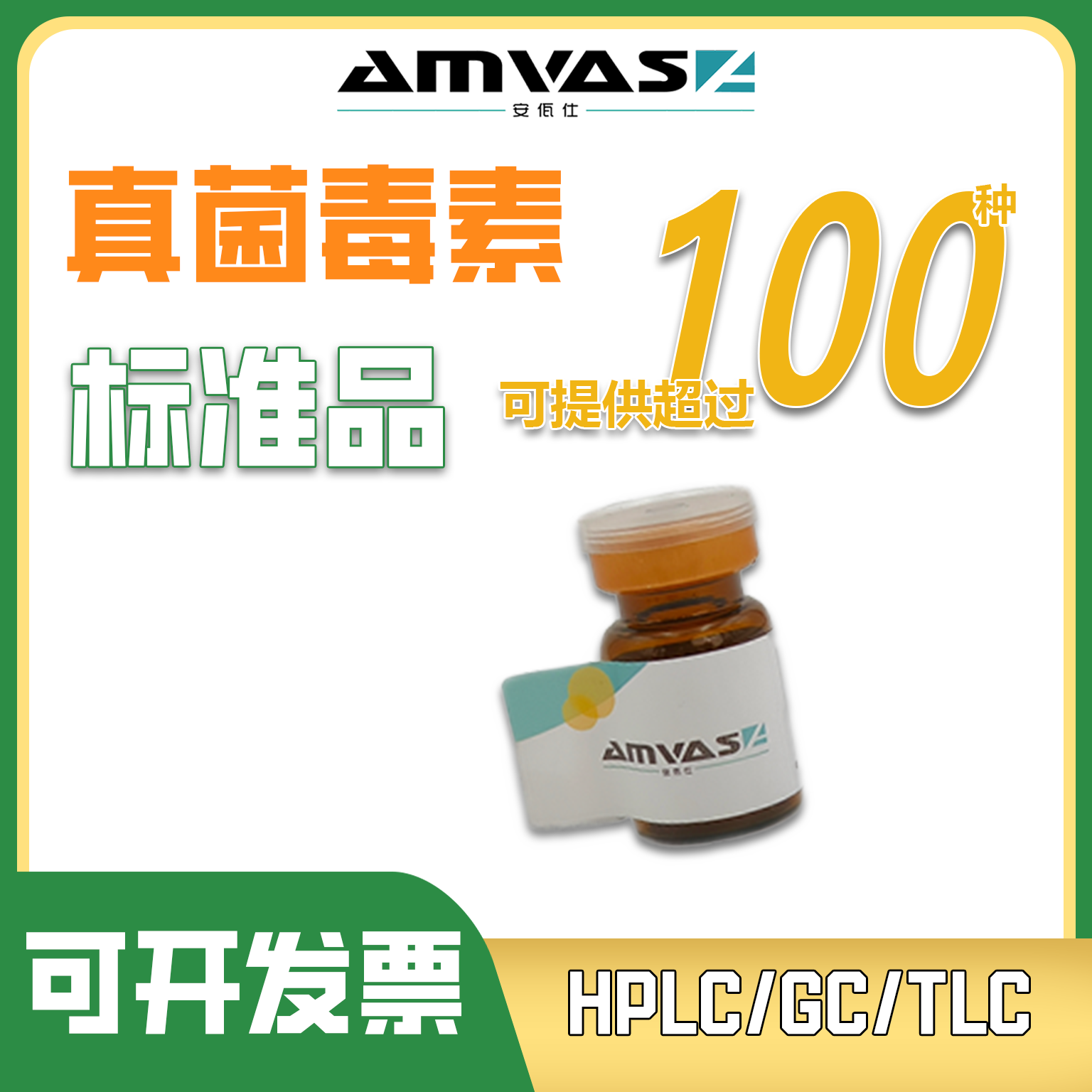 • 安佤仕可提供100多種真菌毒素固體/液體標準品,以滿足不同檢測方法(HPLC/GC/TLC)的需求,同時可根據客戶需求提供更大包裝。且每批次產品都經過NMR,HPLC,LC-MS/MS等不同技術驗證