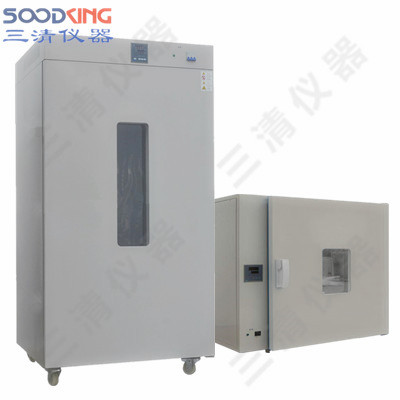 • 鼓風干燥箱概述: 鼓風干燥箱是通過風機吹出熱風,保證箱內溫度平衡,又稱恒溫干燥箱。主要用來干燥樣品,也可以提供實驗所需的溫度環境。恒溫鼓風干燥箱應用于化工,電子,鑄造,汽車,食品,機械等各個行業在恒溫環境條件下做干燥處理和各種恒溫適應性試驗。 鼓風干燥箱介紹: 鼓風干燥箱外殼采用1.2mm優質冷軋鋼板制造,流線型圓弧設計,美觀大方;表面靜電噴塑,耐腐蝕,耐刮擦;鼓風干燥箱內膽采用優質SUS304不銹鋼材料加強設計制成,柜體牢固耐用,承重性高。半圓形四角設計使風向流暢及清潔更方便。恒溫干燥箱工作室與外箱之間的保溫材料為優質超細玻璃纖維保溫棉,保溫層厚度:>70mm, 隔溫效果好,極大減少內腔熱量的外傳。 鼓風干燥箱溫控系統采用微電腦技術,系統具有控溫、定時和超溫報警等功能。采用綜合的電磁兼容設計和人性化的菜單設計,使得設備操作簡單,控溫效果極佳。雙屏超高亮度寬視窗數字顯示,示值清晰、直觀。微電腦智能控制,設定溫度后,儀表自行控制加熱功率,并顯示加熱狀態,控溫精確而穩定。超溫報警并自動切斷加熱電源。有定時功能,定時時間最長達9999分鐘。 鼓風干燥箱的加熱器采用不銹鋼電加熱管,升溫快,壽命長。鼓風干燥箱采用合理風道和循環系統,使恒溫干燥箱工作室內溫度均勻性良好;鼓風干燥箱采用高性能電機及風葉,具有空氣對流微風裝置,內腔空氣可以更新循環,箱內溫度均勻度≤±2%℃。 鼓風干燥箱工作室內擱架可隨用戶的要求任意調節高度以及擱架的數量,箱門具備大視角觀察玻璃窗,便于用戶觀察,鼓風干燥箱采用納米材料門封條及保溫材料令整機性能體現更優越。查看更多非標產品展示請點擊。 臺式鼓風干燥箱 型號尾數A表示250℃ 型號尾數B表示300℃ 產品型號 工作室尺寸(MM) 外形尺寸(MM) 消耗功率(W) 電源電壓 溫控參數 隔板 DHG-9023A / DHG-9023B W300*D300*H270 W585*D480*H450 500 / 1050 220V 50HZ 分辨率:0.1℃ 波動度:≤±0.5℃ 均勻度:≤±2℃ 2 DHG-9030A / DHG-9030B W340*D325*H325 W625*D510*H505 750 / 1050 2 DHG-9053A / DHG-9053B W420*D350*H350 W705*D530*H530 750 / 1050 2 DHG-9070A / DHG-9070B W450*D400*H450 W735*D585*H630 1050 / 1500 2 DHG-9123A / DHG-9123B W550*D350*H550 W835*D530*H730 1500 / 1740 2 DHG-9140A / DHG-9140B W550*D450*H550 W835*D635*H730 1500 / 2000 2 DHG-9203A / DHG-9203B W600*D550*H600 W885*D730*H780 2000 / 2100 2 DHG-9240A / DHG-9240B W600*D500*H750 W885*D685*H930 2100 / 2500 2 立式鼓風干燥箱 型號尾數A表示250℃ 型號尾數B表示300℃ DHG-9030A / DHG-9030B W340*D320*H320 W495*D500*H625 750 / 1050 220V 50HZ 分辨率:0.1℃ 波動度:≤±0.5℃ 均勻度:≤±2℃ 2 DHG-9070A / DHG-9070B W400*D350*H500 W545*D530*H805 1050 / 1500 2 DHG-9140A / DHG-9140B W450*D550*H550 W595*D730*H855 1500 / 2000 2 DHG-9240A / DHG-9240B W500*D600*H750 W645*D780*H1055 2100 / 2500 2 DHG-9420A / DHG-9420B W600*D550*H1300 W745*D730*H1670 4000 / 4500 380V 50HZ 3 DHG-9620A / DHG-9620B W800*D600*H1300 W945*D780*H1670 4500 / 6000 3 DHG-9640A / DHG-9640B W800*D800*H1000 W945*D1000*H1370 4500 / 6000 3 DHG-9920A / DHG-9920B W1000*D600*H1600 W1145*D780*H1970 6000 / 7500 3