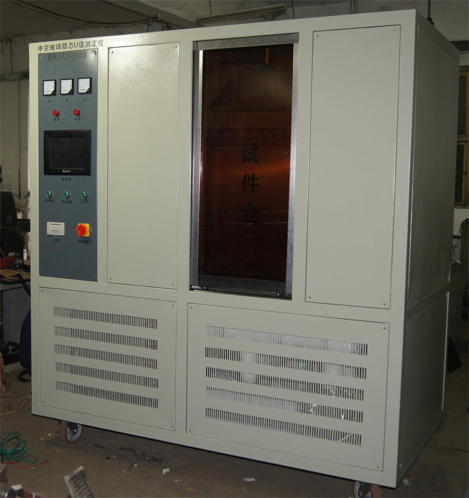 • DR800型中空玻璃穩態U值穩定儀 產品用途: 主要利用防護熱板檢測中空玻璃的U值(傳熱系數)。中空玻璃的U值客觀地反映了其節能性的優劣,門窗采用具有較小U值的中空玻璃會大大提高整個建筑物的節能水平。 適用標準: GB/T 10294-2008《絕熱材料穩態熱阻及有關特性的測定 防護熱板法》 GB/T 22476-2008《中空玻璃穩態U值(傳熱系數)的計算及測定》 產品優勢: 1、無線WIFI網絡服務器系統,實時數據可實時上傳保存至云端服務器。 2、實時數據和歷史數據全互聯網可實時查詢,無限期保存。 3、控制系統下位機控制核心采用進口嵌入式工控機和高精度A/D、D/A模塊集成式設計。 4、溫度穩定性能好,試驗裝置中的護板有效的防止熱板熱量的散失,對能量及時的給予補充,形成一維的傳熱作用,使得試件的溫度穩定性能大大的提高。 5、雙試件式設計,在兩個試件中夾一個加熱單元,試件的外側各設置一個冷卻單元。試件垂直放置,減少冷熱板對流對試驗結果的影響。冷板電動鎖緊結構,方便的操作程序。 6、熱、冷板使用壽命長,水路循環中使用耐壓耐腐蝕的硅膠管。 7、安全性能高,在設計的過程中電路域制冷循環的*立化設計,使得電器部分不受水路的影響,從而保障了電器及數據采集的穩定性。 8、測試種類多,對于平板玻璃(壓花、澆注玻璃)、鍍膜玻璃或其他材料構成的平型雙層或多層中空玻璃均可測定。 9、試驗過程為自動控制,整個過程數據自動記錄,自動出結果并打印。 技術參數: 1、試件尺寸:800mm×800mm×(10~120)mm(厚); 2、試驗設備占地空間:2000mm×1100mm×2200mm; 3、傳熱系數測量范圍:(0.20~5.0)W/(㎡·K); 4、傳熱系數測量精度:±3%; 5、傳熱系數測量重復性:±1%; 6、冷板溫度測量范圍:(-5~50)℃; 7、熱板溫度測量范圍:(10~80)℃; 8傳熱系數測定儀的溫度測量值 冷板溫度 :2.5℃ ;熱板溫度:17.5℃; 9、溫度分辨率:0.01℃; 10、試驗室溫度:(23±2)℃; 11、試驗室濕度:(40~60)%RH; 12、電源電壓:220V ; 13、功率:2kW; 14、試件數量:2塊