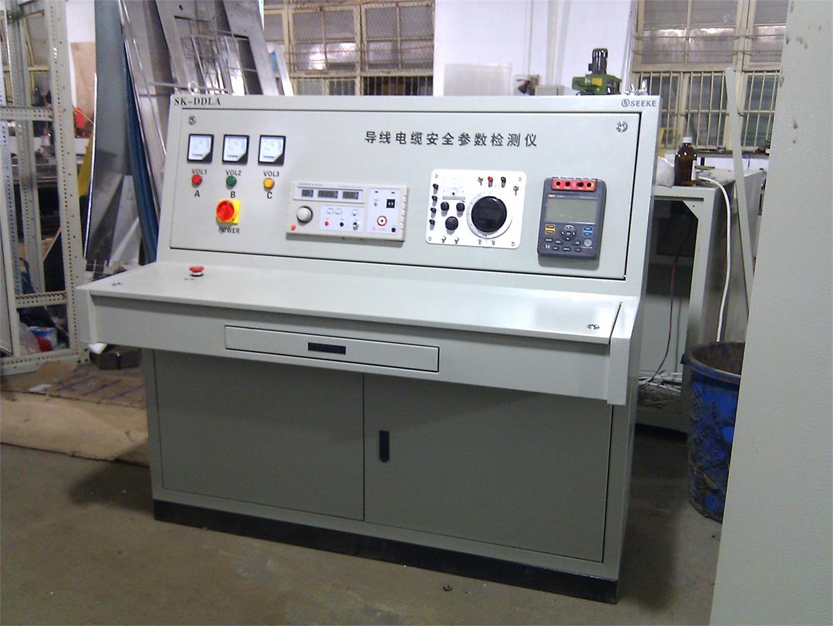 • DDLA32型 導線電纜安全參數檢測儀 設備名稱:導線電纜安全參數檢測儀 設備型號:SK-DDLA32型 產品用途: 用于對導線電纜的泄漏電流、絕緣電阻、導線電阻、耐壓性能進行測試。參照歐美同類產品。 適用標準: GB/T 3048.1~3048.8-2007《電線電纜電性能試驗方法》 GB/T 6829-2017《剩余電流動作保護電器的一般要求》的第5.5條和第7.2條標準要求 產品優勢: 1. 采用32位高精度業工控機,8寸彩色觸摸屏達到歐洲同類產品先進水平。 2. 一體化:本機將泄漏電流、導線電阻、絕緣電阻、耐壓測試四項測試功能合為一體,還可分解為單機,實現脫機獨立運行。操作使用方便易學。 3. 簡易化:本機結構簡單,方便維護。 4. 人性化:安裝有移動式導線測試支架,方便使用。 5. 安全化:具備安全操作功能。 6、為更方便用戶在不同場合或不同條件下使用,耐壓測試項測試電壓、測試時間、整定電流均以0為起點連續可調。具備安全操作功能。 技術參數: 1、外形尺寸:(長×寬×高)650mm×420mm×1750mm 2、系統精度:0.2% 3、工作環境:溫度0~40℃ 濕度:<85%RH 4、海拔高度:<10000米 5、整機重量:135kg 6、使用功率:5.5KW 7、電源電壓:AC220V/50Hz