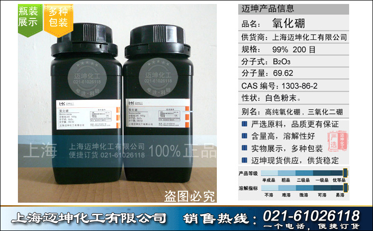 氧化硼 99.99%,99.999% 上海邁坤化工有限公司