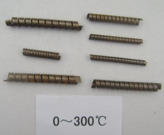 • 提供0~50℃、0~60℃、0~100℃、0~120℃、0~150℃、0~200℃、0~250℃、0~300℃、0~400℃、0~500℃、0~600℃、50~650℃、-20~80℃、-40~80℃、-60~40℃、-80~40℃雙金屬溫度計元件。我們生產的雙金屬溫度計感溫元件是印刷版刻度盤的首選。使用預先統(tǒng)一印制的刻度盤,精度可達1.0級,免去傳統(tǒng)的先分度、手劃標牌、再復測等繁瑣工藝。 我們可以提供特殊產品的元件以滿足市場需求。比如我們可以提供0~50℃、φ6保護管、插深僅為50mm的元件。元件直徑分Φ6.5、Φ5、Φ4、Φ3四種,也可按照客戶要求制作。雙金屬材料有國產優(yōu)質材料及進口高溫材料兩種。元件長度為20mm~70mm不等。